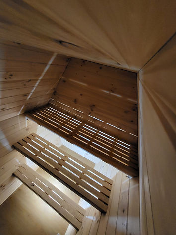 Our Kuusi sauna is a unique blend of form and function, inspired by the geometric strength of the geodesic dome. Named after the Finnish word for six, Kuusi reflects both its six-sided hexagon shape and the balance it brings between strength and harmony. The structure offers incredible stability and durability, while also enhancing the movement of hot air inside, creating smooth, even airflow throughout the space. This rounder form encourages better heat circulation, making each session more consistent and comfortable. Like all our saunas, it features signature high benches, proper ventilation, and is handcrafted to Finnish standards—ensuring an authentic and deeply restorative sauna experience, wrapped in a structure as strong as it is beautiful.